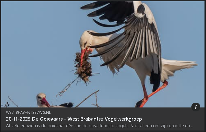 ooievaars gehouden. Mei '25: 1) De week van de ooievaar (5 tm 11 mei) was een succes. Er kwamen op onze website 10.630 bezoekers in die 7 dagen met op 7 en 8 mei ruim 2000 per dag. In die week leverde dat 110.000 pageviews op! En ook in die week kwam op 7 mei de 200.000 ste volger binnen op FB.